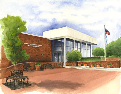 Veterinary Medicine Administrative Building, also known as McElroy Hall. Features the caduceus design in brick on the north wall. Frame with your DVM degree.